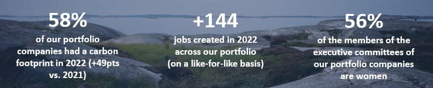 Therefore, we encourage all our portfolio companies to act responsibly, convinced that an active policy on environmental, social and governance issues contributes to lasting value creation for the company and all stakeholders.